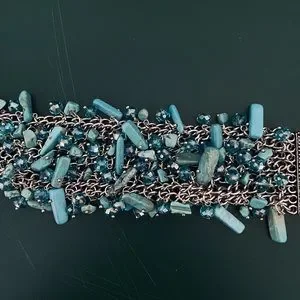 Wide chain bracelet with faux turquoise stones. Great statement piece and looks really stylish. 9x 2 inches. Thank you for visiting my shop.