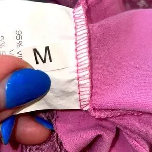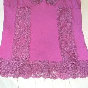 This sparkly pink camisole has adjustable straps and a V neck that’s embellished with lace and rhinestones! The peek a boo lace continues down the front sides under the breasts and finishes off the bottom too! Wear it alone or under a blouse or jacket or sweater. Whatever you fancy‼️