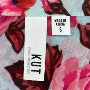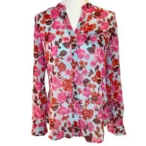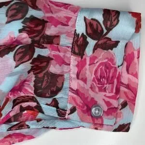 Kut from the Kloth Sheer Floral Long Sleeve V-Neck Button-Down Shirt