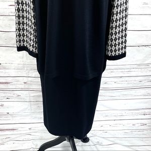 St. John Sports Women’s 2PC Knit Dress Suit Dress & Cardigan Black/White Size XL