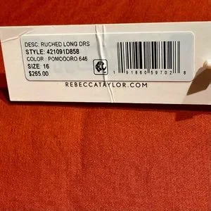 Rebecca Taylor NWT Ruched Top Long Dress Pomodoro Size 16