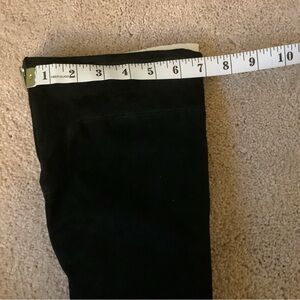 Marc Fisher! These boots have it all! They’re soft, sexy, and look phenomenal! Soft, suede-like, stretchy fabric. 2 functional zippers, 1 on the back at the top of the boot, the other on the side. Stylish “gold” Marc Fisher plate above the heel.