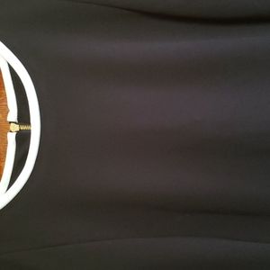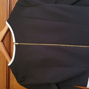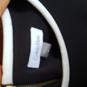 Classic Calvin Klein Little Black White Trim Dress Women's Sz 8, 3/4 Bell sleeves w/white trim Back has gold zipper! Neckline trimmed in white! Polyester/spandex