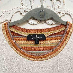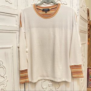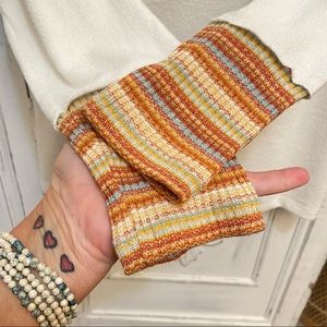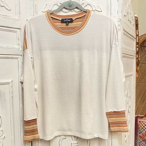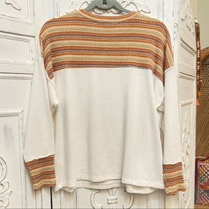 Lulu’s Cream & Fall Colors Stripes Color And Cuff Trim Oversized Sweater Top S
