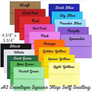 *Comes with 4 *SELF SEALING* A2 Envelopes with square flap in the color of your choosing!