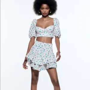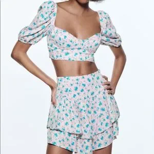 Zara Floral Print Satin Effect Corset Top