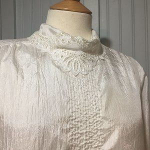Vintage CottageCore Blouse Pintuck Front High Collar Size 14 USA Lace Pearls