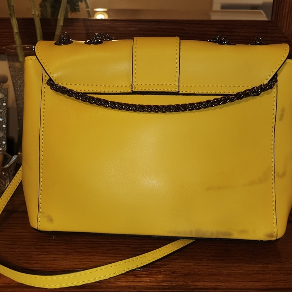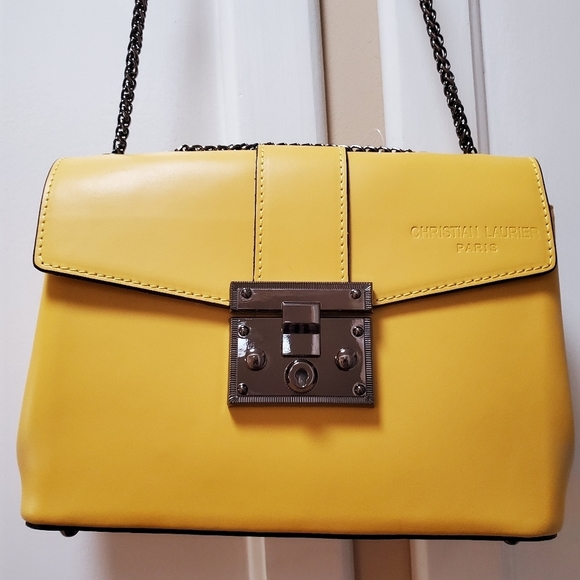 Brand New, made in Paris, original Christian Laurier, Sunny Yellow, Crossbody Tote Bag, Rounded top and Bottom, Sectioned in Two places, some minor markings on the back side -see last two pictures. Impressive look and definitely eye catching 👍