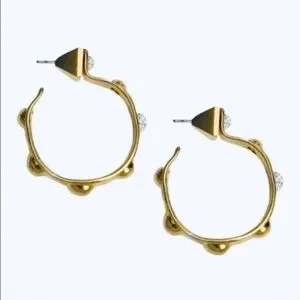 $245 Alexis Bittar Large Gold Repoussé Liquid Molten Pavé Crystal Studded Hoop Earrings