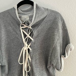 Anthropologie TLA Lace Front Short Sleeves Sweatshirt
