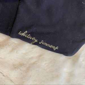 Gently used Whitney Simmons x Gymshark Sports Bra in Black, size extra small*. Very pretty and simple sports bra from the Whitney Simmons special line for Gymshark. A crowd favorite! Swooping scoopneck silhouette with plunging V back. Cute metal link accent with cutout to show off a little skin in back. Metallic gold cursive “Whitney Simmons” logo and message. Gymshark logo on back. Soft, quality material. Classic black to match everything. No padding but has spots to insert pads. *Size tag has been cut but this fits like an extra small or compressive small. Please see approximate measurements and ask any questions if necessary. In good used condition but may have light signs of wear.