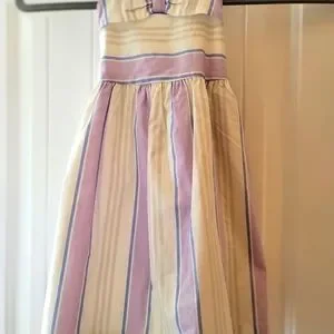 Adorable Janie and Jack criss- cross in back halter dress. cotton. with adjustable straps. Lavender and blue and green stripes.