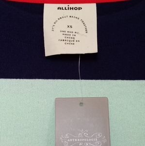 New w/tags Anthropologie ALLIHOP COLORBLOCK STRIPE DRESS. Navy, Red, Light Lilac/grey, Mint green. Features thicker cotton knit, unlined with 3-button placket on 3/4 sleeves. Approx Measurements: Bust 18", Length 34", Sleeves 19.5".