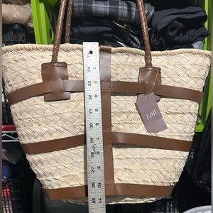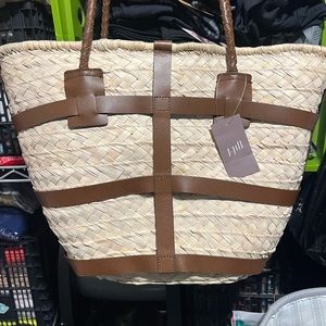 One size. Our woven seagrass straw bag has a roomy design that holds all your essentials in spring-perfect style. Leather-trimmed accents and handles for contrast. Fabric-lined interior with drawstring closure.