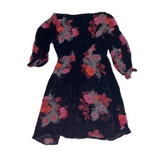 DEPT Beaded V-Neck Flowy Long Sleeve Summer Mini Floral A-Line Dress