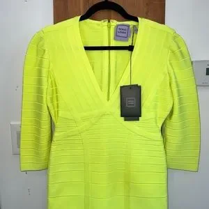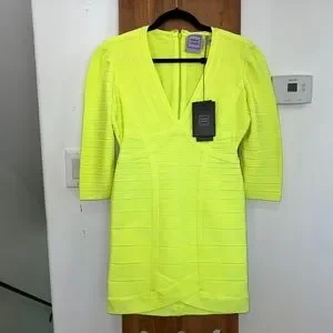 🆕 Hervé Leger Neon Yellow Nathalia Night Out Dress