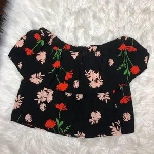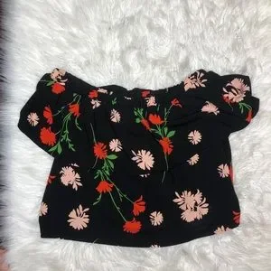 NWOT topshop off shoulder black floral top blouse