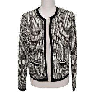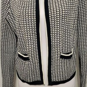 Boden Womens Navy/White Cotton Cranbrook Cardigan Welt Pockets Open Front SZ 8