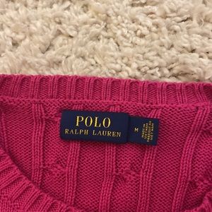 Polo raph Lauren crewneck hot pink sweater with navy horse