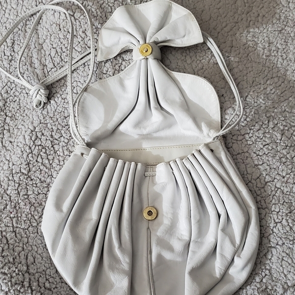 Vintage 50's Clemente leather white purse ruffle bow shoulder bag EXCELLENT COND