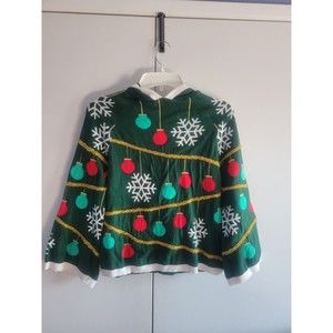 Christmas Hoodie Knit Sweater Ornament Snowflake Green Pullover Girl M 7/8.