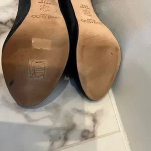 My old eyes are playing tricks on me, lol. Are they leather or satin? Tts or do they run small like most Choo’s? You’re killing me with the 7-1/2’s and 7’s. I’m a perfect 7 in nearly every shoe made. Flats and heels, but Choo tends to run small. What’s the heel height please? Thanks 🙏🏻 Cindy