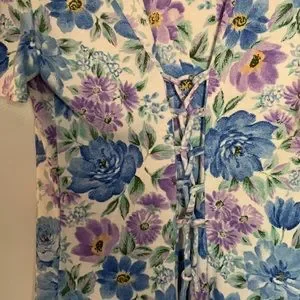 Can we have a moment for the corset back, please?! And these colors are soooo beautiful! And this fabric? So soft and comfy. With the lines in the front it is super flattering, and I’m obsessed with the blue textured buttons.