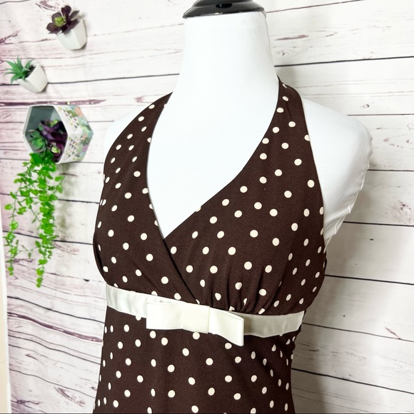 Brown & Cream Polka Dot Pinup Party Dress Size Medium 9/10
