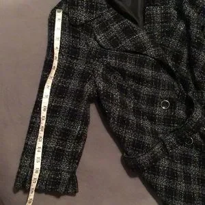 Pre-owned. In overall good condition. Super cute belted jacket.