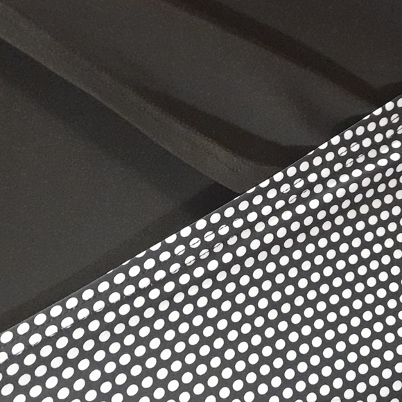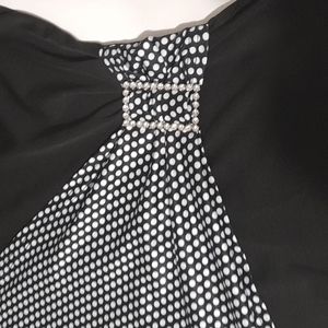 Shein Cross V-Neck and long Sleeve blouse, One Middle of The Blouse is Black and White Polka Dot and The Other Middle is Completely Black,The Blouse Has Stretchy Fabric.