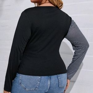 BLACK AND WHITE POLKA LONG SLEEVE BLOUSE SIZE 4XL