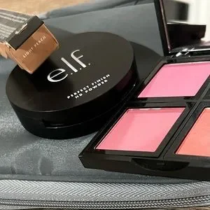 ELF Brush and Makeup set with brush kit/bag in like new condition — contains 9 brushes. Concealer has never been opened. The brush set is missing the big foundation brush, but other brushes are still in original packaging with bag/case. Primer powder and one color of the blush/contour compact palette may have been swatched once/twice, but otherwise in unused condition. Offers welcome!