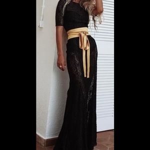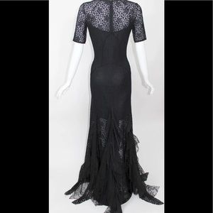 Beautiful Nina Ricci maxi dress / gown, floral black lace, fishtail