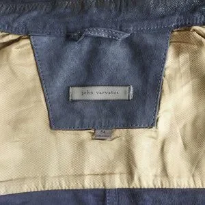 1. 100% Goatskin, Body Lining: 100% Viscose, Sleeve Lining: 59% Viscose, 41% Polyester, Concealed Snap Button Closure, Two Chest Pockets, Burnished Seam Details, Crackle Leather Finish, with wash care label