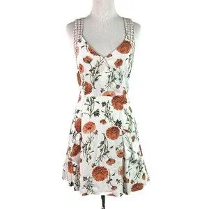 KIMCHI BLUE Womens Size 0 White Floral Cross Strap Mini Dress
