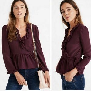 Madewell Burgundy/Maroon Silk Ruffle-Hem Wrap Top