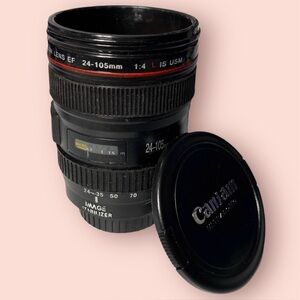 3/$10 Mug w/ Lid 5” Camera Lens Black Plastic