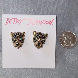 Embellished with stone accented eyes and textured details. Gold-tone metal with plastic. Post-back closure.