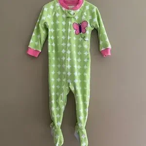 Carter’s footie pajamas Green with white and pink and butterfly Size 18mo
