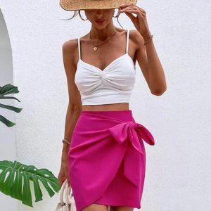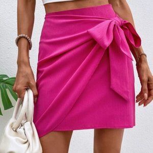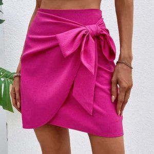 Hot Pink Knot Detail Mini Skirt
