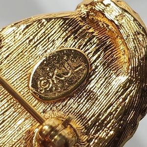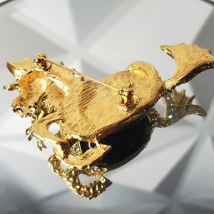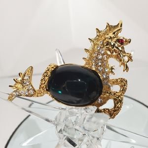 Soo Gorgeous!! Vintage KJL Kenneth Lane Sea Dragon Brooch! Set in Shiny Gold-tone with Pave Crystals, Ruby glass eye and a large Emerald Jelly Belly Cabochon. In Excellent As New Condition! Signed & Absolutely 💯 Authentic.