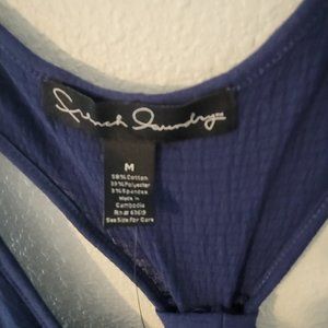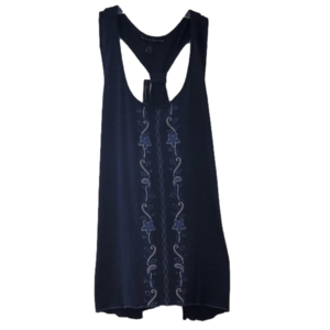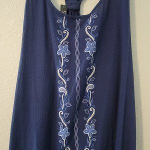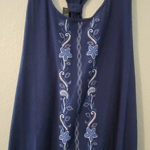 French Laundry Womens tank top, Navy with embroided flower pattern and Knotted Back. Size Medium