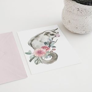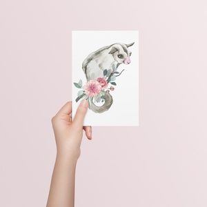 Watercolor Floral Sugar Glider Illustration Wall Art Print Poster Unframed