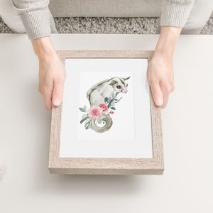 Watercolor Floral Sugar Glider Wall Art Print Poster Unframed