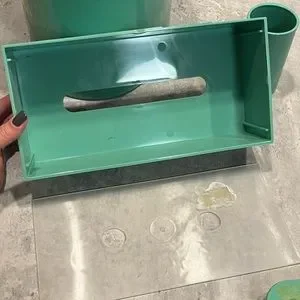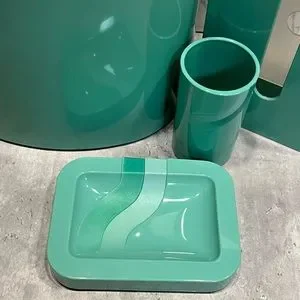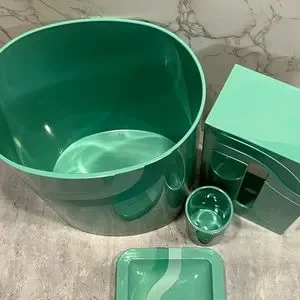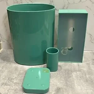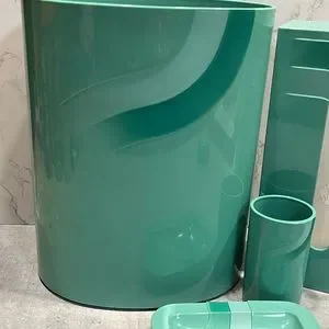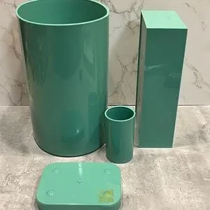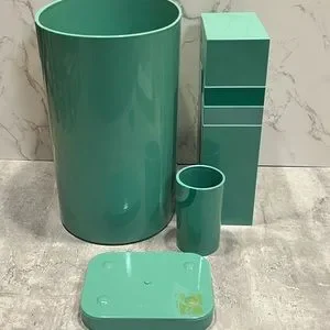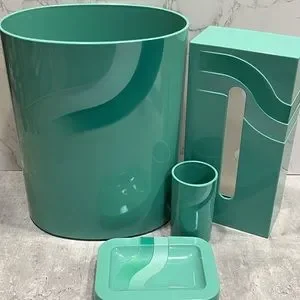 Vintage seafoam teal plastic bathroom accessories waste bin cup soap dish tissue