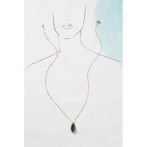 Anthropologie Skipping Stones Necklace Crystal Gem Gemstone Geode Gold Gray Grey