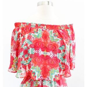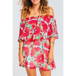 Show Me Your Mumu Casita Off the Shoulder Floral Mini Dress Size XS Red Green