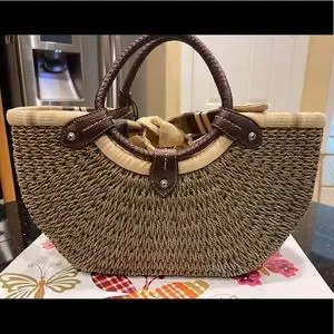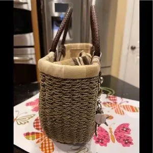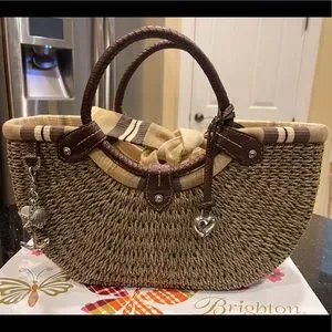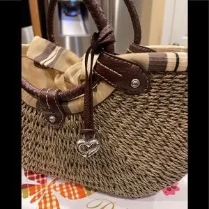 BRIGHTON NAUTICAL ACCENTS JUTE AND LEATHER SHOULDER BAG HANDBAG PURSE