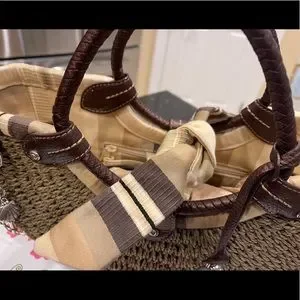 BRIGHTON THICK JUTE WITH BROWN LEATHER ACCENTS NAUTICAL HANDBAG