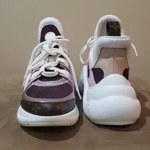 Louis Vuitton Archlight sneakers, with a beautiful colorway of pinks,burgandy and tan. Add this stylish pair to your collection. Size 11 in women